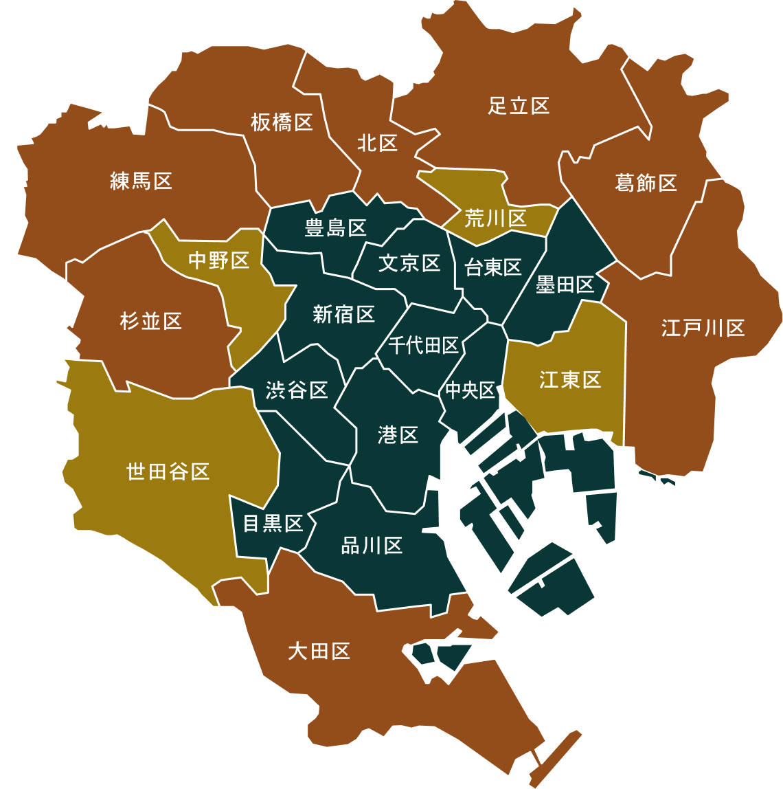 千代田区 中央区 港区 台東区 新宿区 渋谷区 豊島区 墨田区 品川区 文京区 目黒区 |